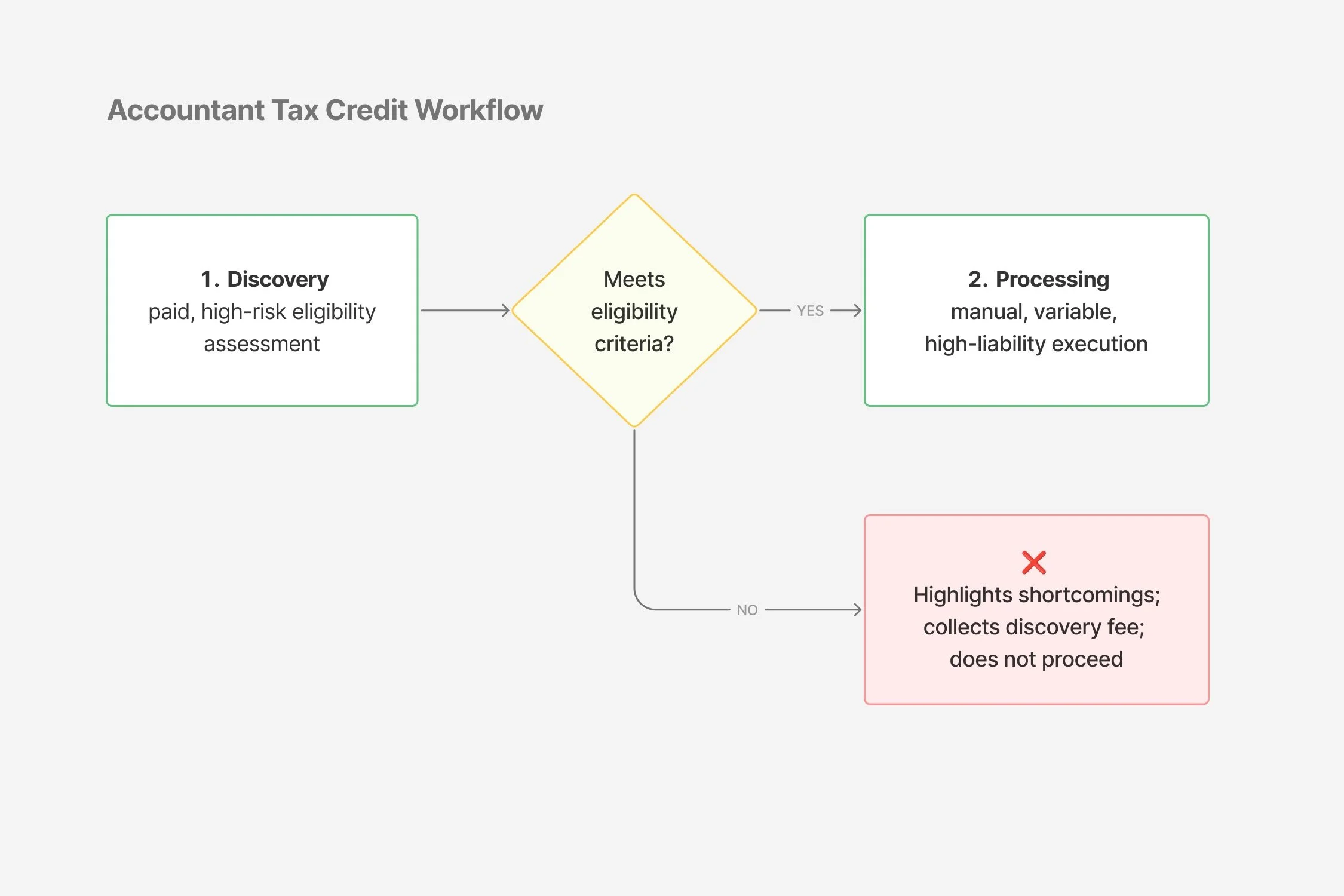 INSIGHTCustomer discovery revealed that tax credit work is a two-phase, high-trust workflow: