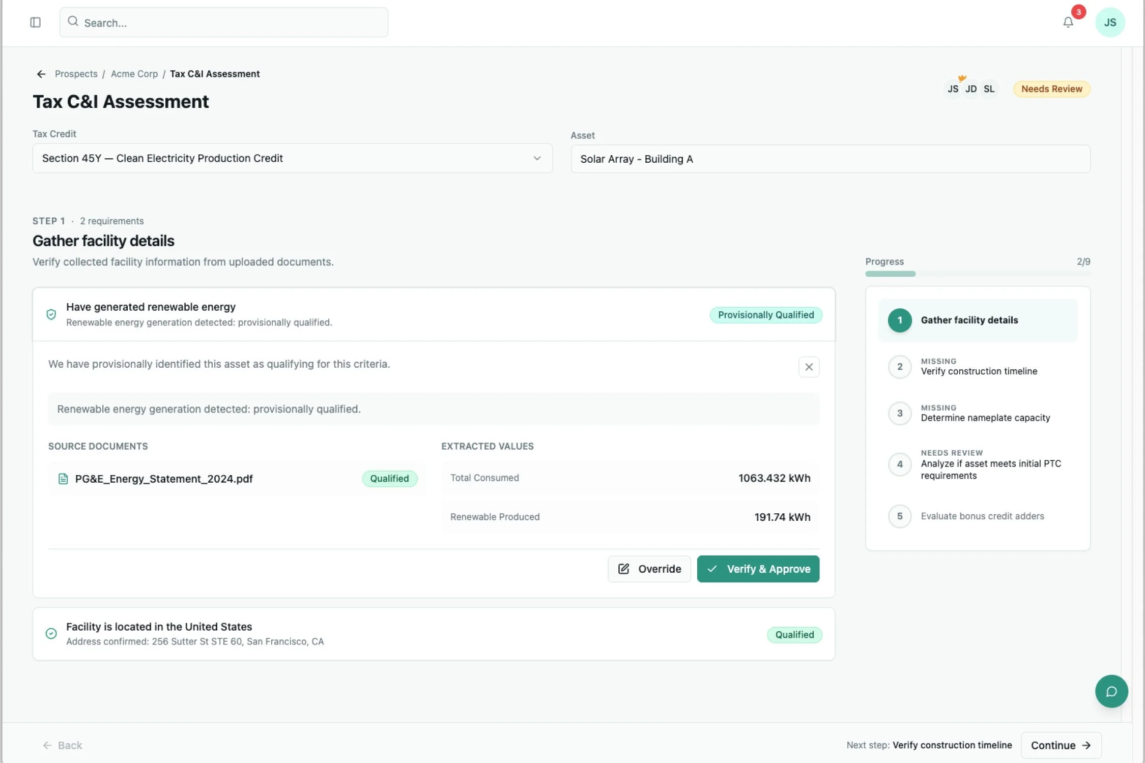 Built structured tax credit discovery workflows