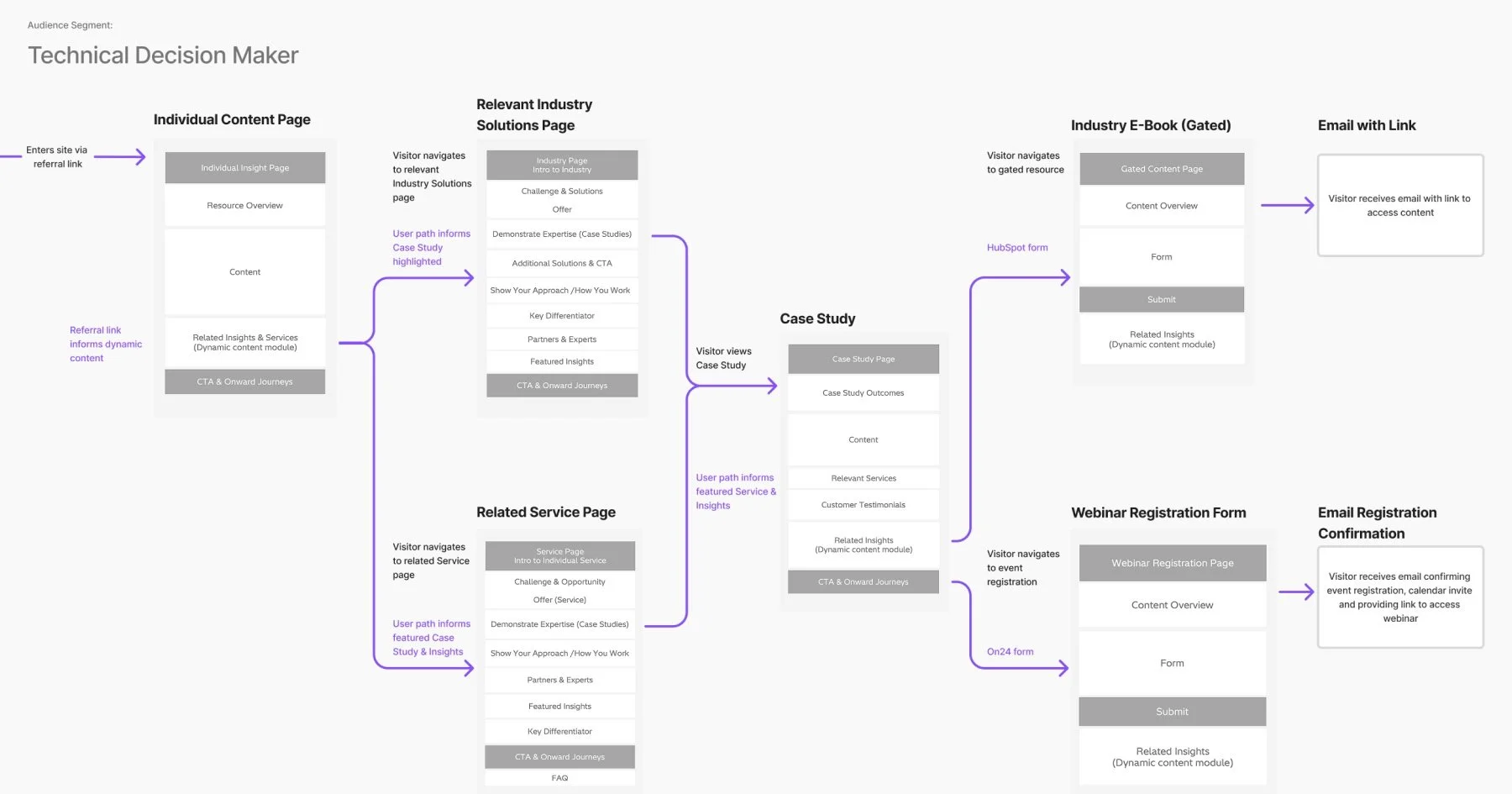 We first simplified the site and navigation around customer intent, rebuilt the content strategy around buyer challenges and proof, and partnered with analytics teams to make journeys measurable.